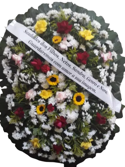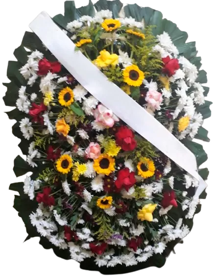 Com girassóis e folhagens selecionadas, a coroa dupla de 1,60m traz luz e esperança para qualquer ocasião. Disponibilizamos entrega rápida em São Paulo, Vila Mariana, Vila Formosa e no ABCD, como São Caetano e Mauá.